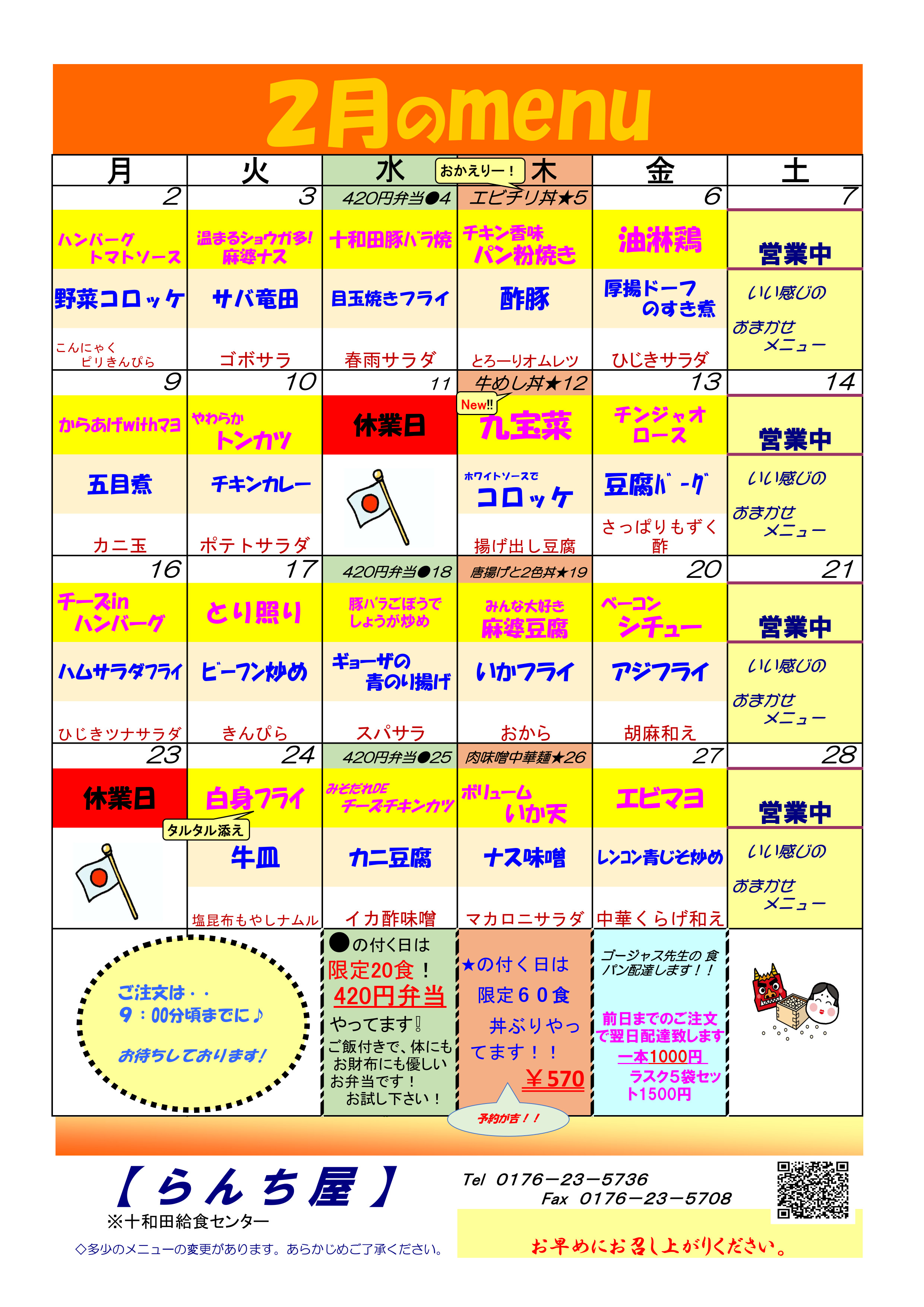 2月のMENU