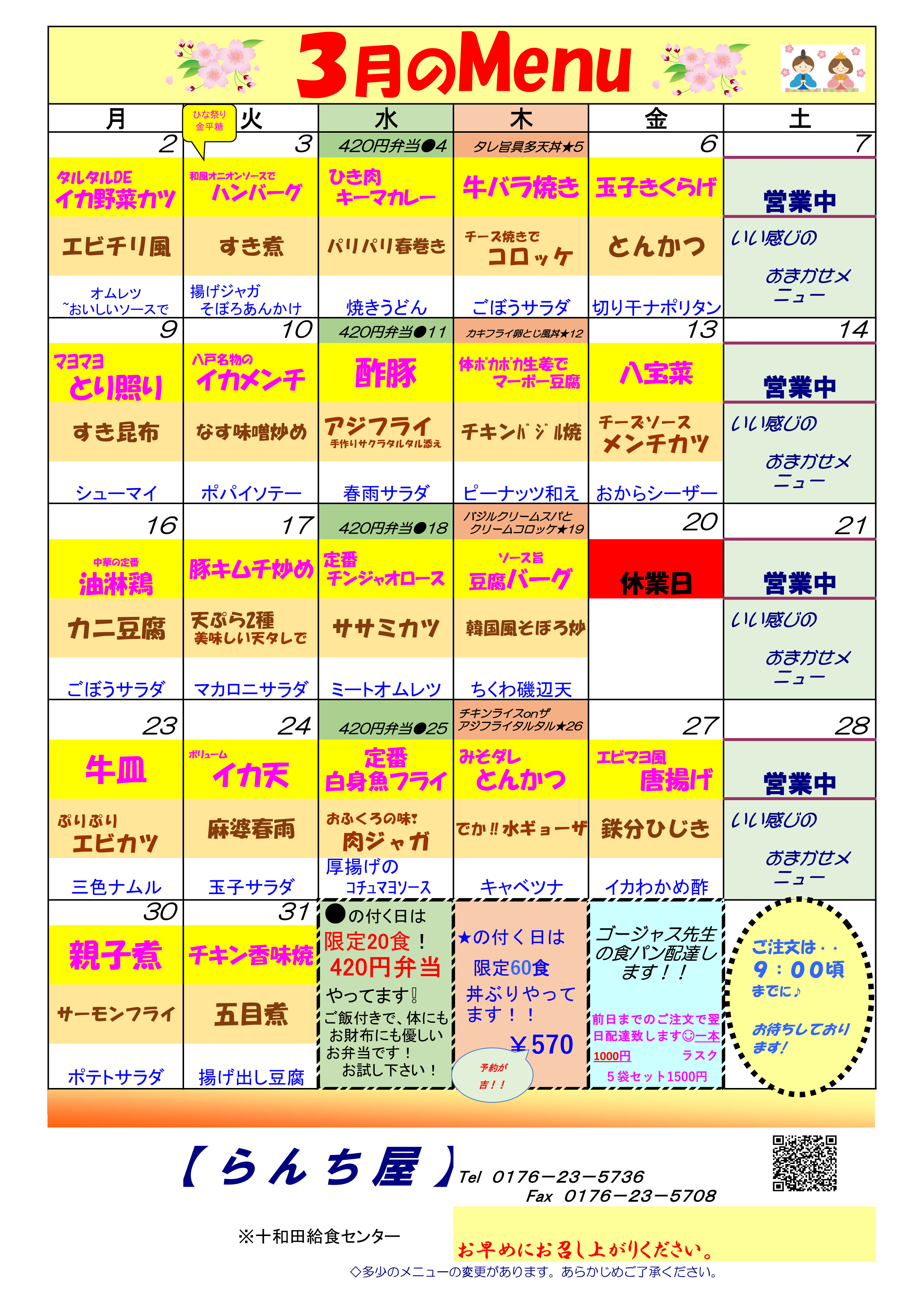 3月のMENU